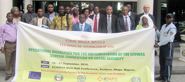 The implementation of the ECOWAS General Convention on social security aims at strengthening the extension of the coverage of social security of migrants and their families and guarantees the portability of their social security rights within the ECOWAS region. It follows the recommendations and action plan prepared during a workshop held from Wednesday 16th to Thursday, 17th September 2015 in Abuja, Nigeria. The workshop was organized by the ECOWAS Commission in collaboration with ILO under the implementation of the project “Support to Free Movement of Persons and Migration in West Africa” (FMM) project.